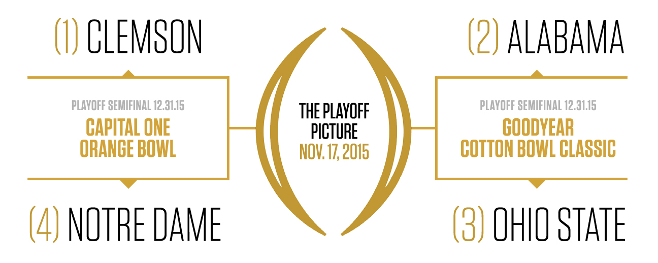 Here’s how the third edition of this year’s CFP rankings stacks up, illustrated with unofficial alternative football helmets designed by Deeyung Entertainment.