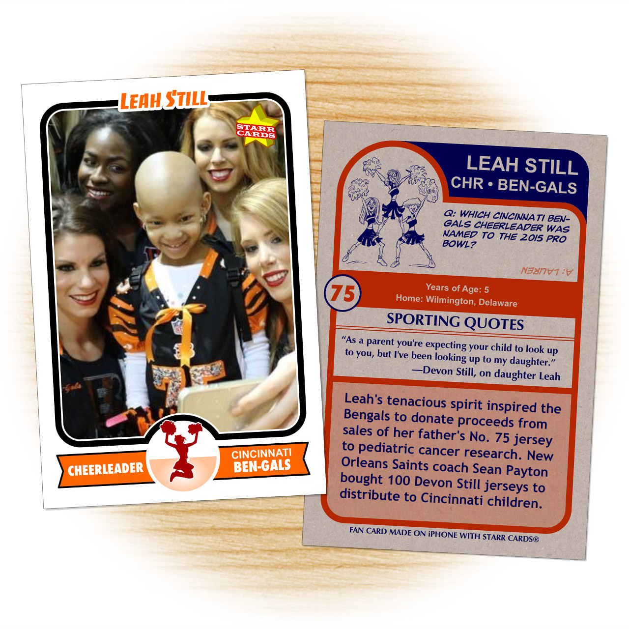 Last November, Leah was able to attend her first Bengals game and hung out with the cheerleaders beforehand. Between quarters she came onto the field to help present a check for $1.3 million to Cincinnati Children’s Hospital.