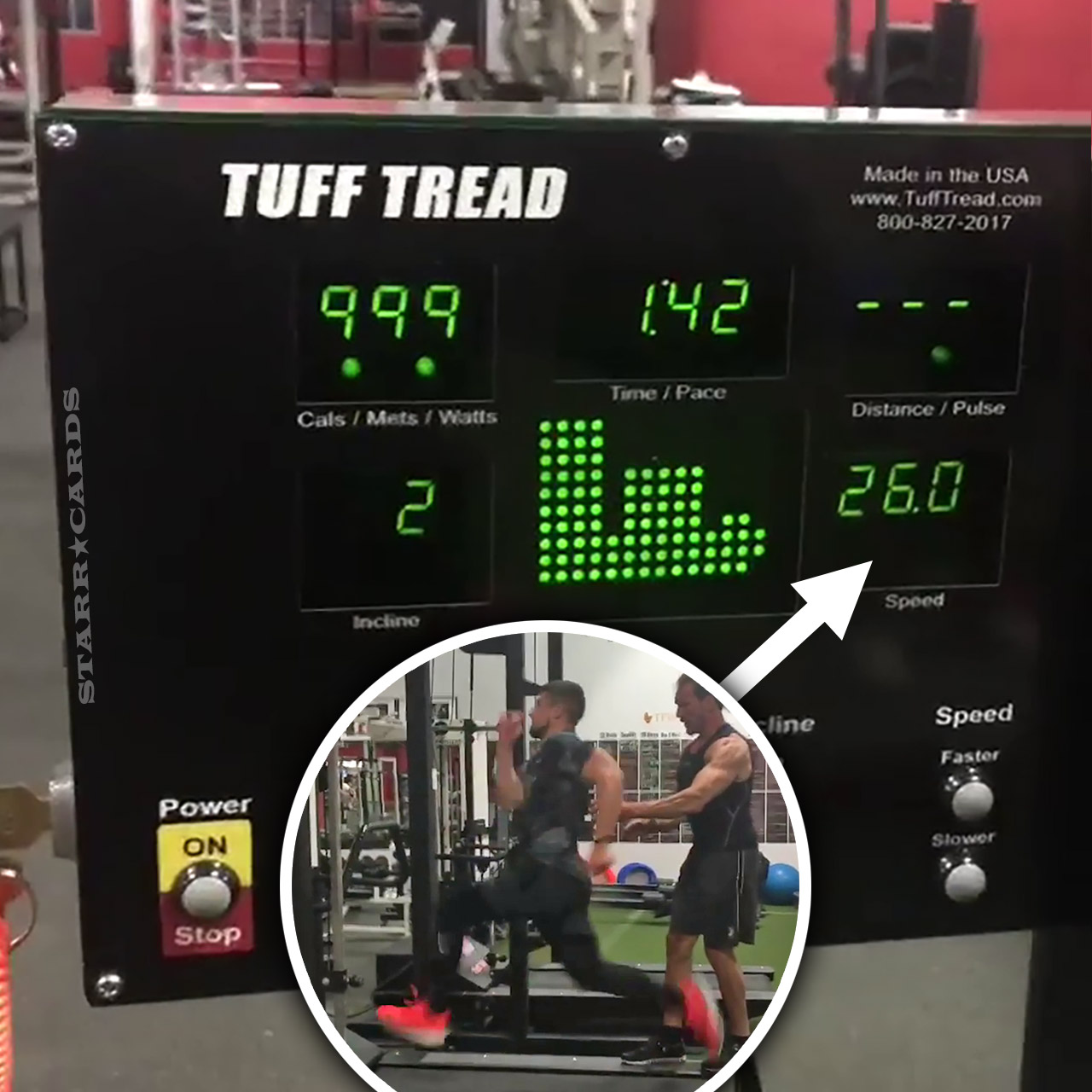 Alexandris recently posted a video to Instagram in which he jumps full stride on a treadmill zipping around its rollers at 26 miles per hour.