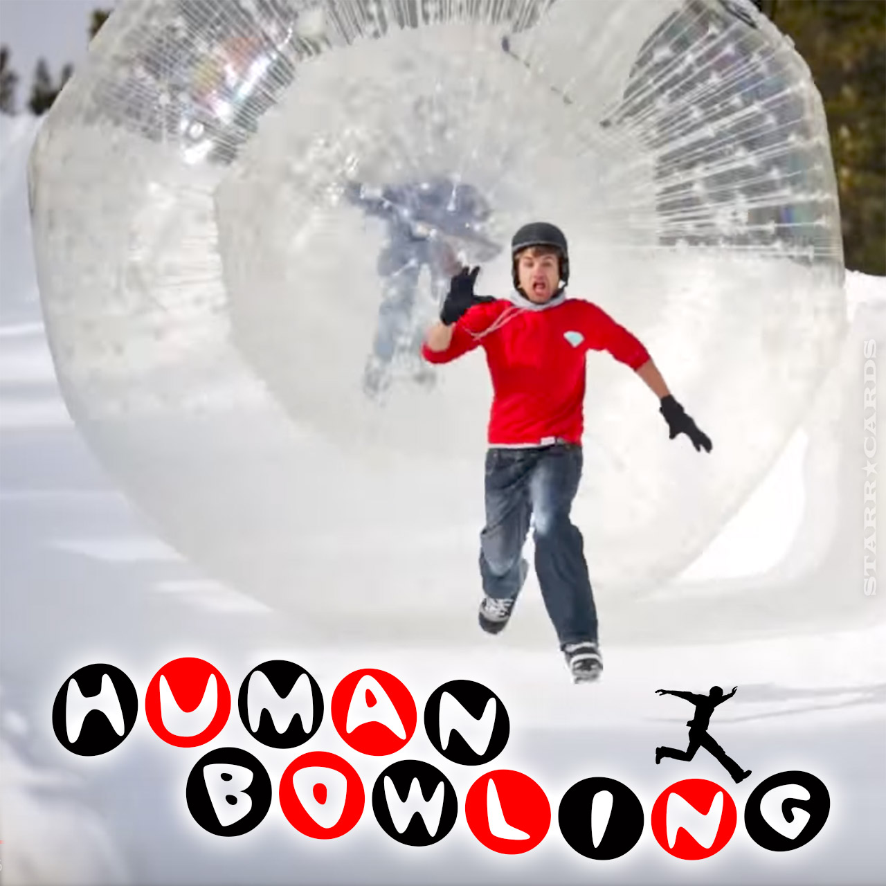 In 2014, Devin Graham, who produces extreme sport videos for his YouTube channel devinsupertramp, partnered with Bear Naked Granola to film human bowling on snowy Mammoth Mountain in California. Bowlers barreled down the ski slope in a Zorb ball before smashing into giant-sized inflatable pins at the bottom.
