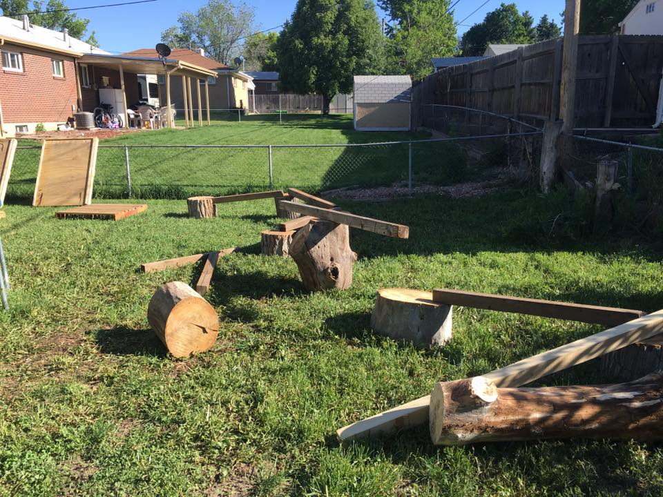 Gavin MacCall went all out in constructing a course complete with quintuple steps, balance beam, teeter log, cargo climb, shed roof, zip line, hanging steps (shown above), log thingys, and finally a warped wall.