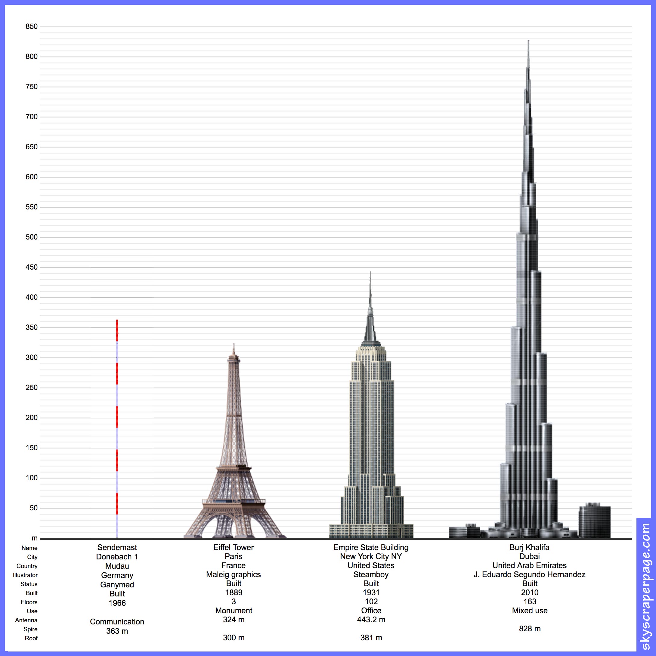 At 1191-feet (363 m) in height, the twin Donebach Sender masts were the tallest structures in all of Germany when they were first erected in 1966. The Berliner Fernsehturm communications tower, built in 1969, now holds the title of tallest at 1207 feet (368 m).