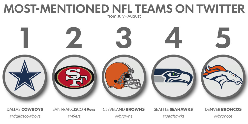 Johnny Manziel has yet to play a down in an actual NFL game, but just his presence on the Browns has set the team afire on Twitter. Cleveland was the third most tweeted about team trailing only America’s perennial favorite Dallas Cowboys and the San Francisco 49ers.
