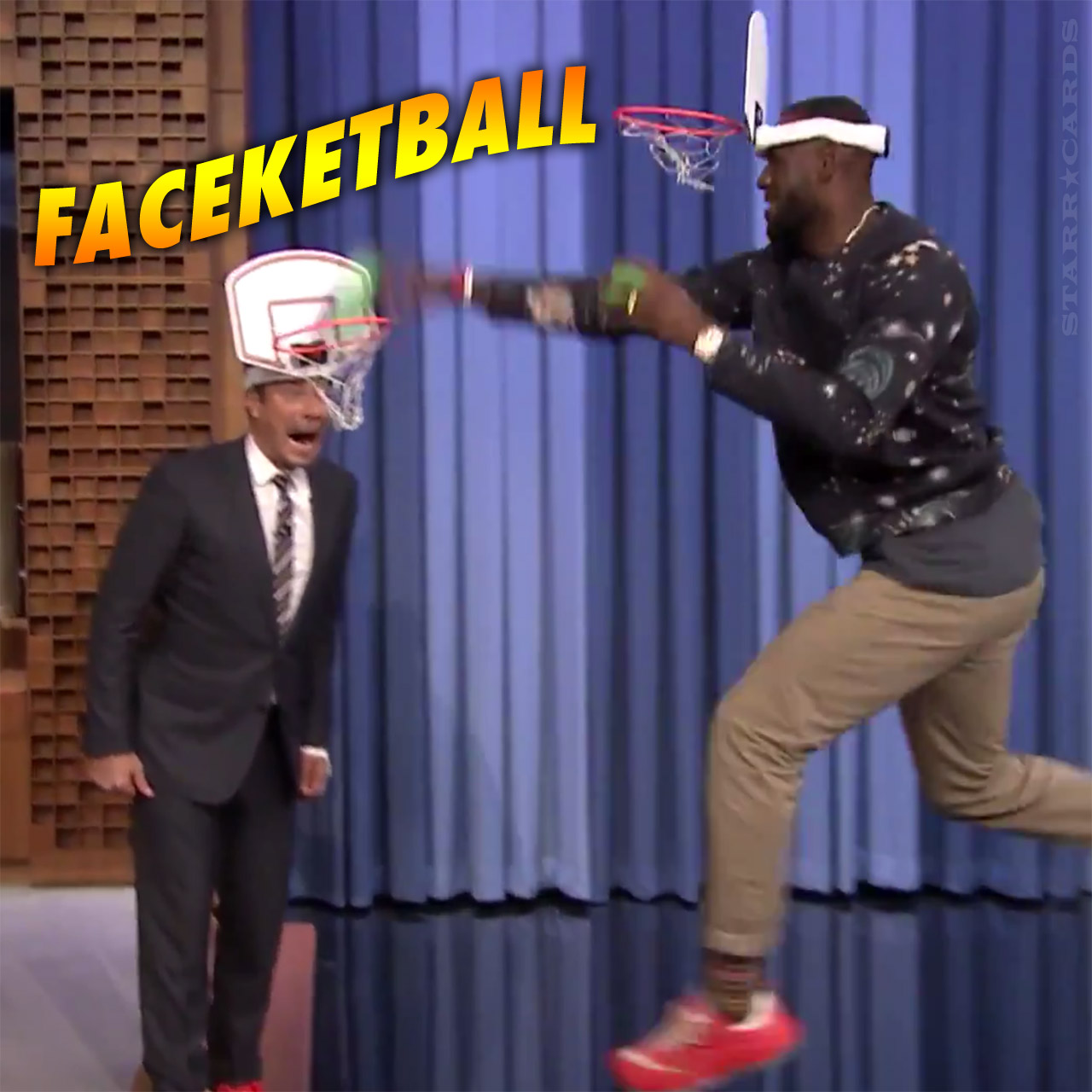 LeBron James took a break from sulking about the Cavaliers’ NBA Finals flameout, to come on the Tonight Show for a game of faceketball with Jimmy Fallon. Fallon, nursing a finger injury, managed to to hit the first hoop, before James answered.