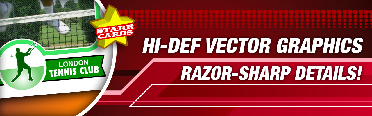 Choose from an ever-expanding lineup of designs to give your cards just the right look. No matter if you’re a proud parent, a budding talent, or a club wanting to raise revenue, Starr Cards can create the perfect tennis cards for you, your team, or league.