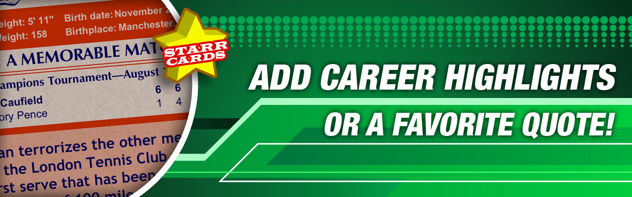 Discover for yourself what thousands of players, coaches and fans already know — nothing compares to the quality or impact of a custom card from Starr Cards.