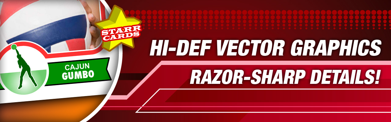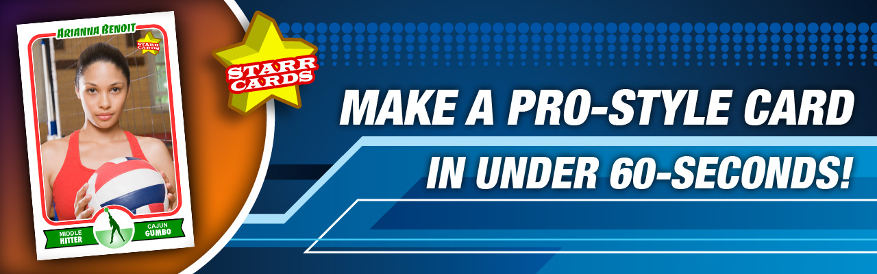 Choose from an ever-expanding lineup of designs to give your cards just the right look. No matter if you’re a proud parent, a budding talent, or a club wanting to raise revenue, Starr Cards can create the perfect volleyball cards for you, your team, or league.