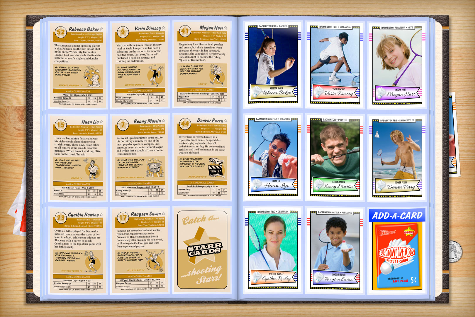 Discover for yourself why Starr Cards is being hailed as “the most exciting development in sports card collecting in the new millennium.” If seeing is believing, then Starr Cards is sure to make you both a believer and a diehard fan. If you like badminton, you’re gonna love your Starr Cards custom badminton cards!