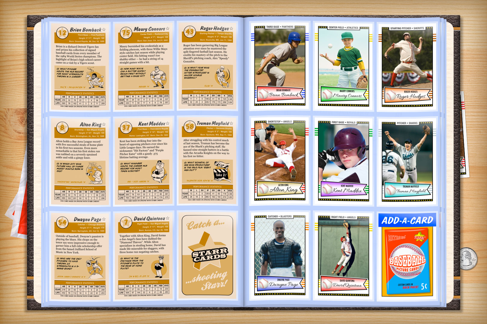 Retro 50 series is one of several premium custom baseball card designs that can be unlocked within Starr Cards award-winning Baseball Card Maker for the iPhone, iPad, or iPod. Its classic appearance is ideal for a Little League or prep team — each and every card is sure to become a collectable keepsake.