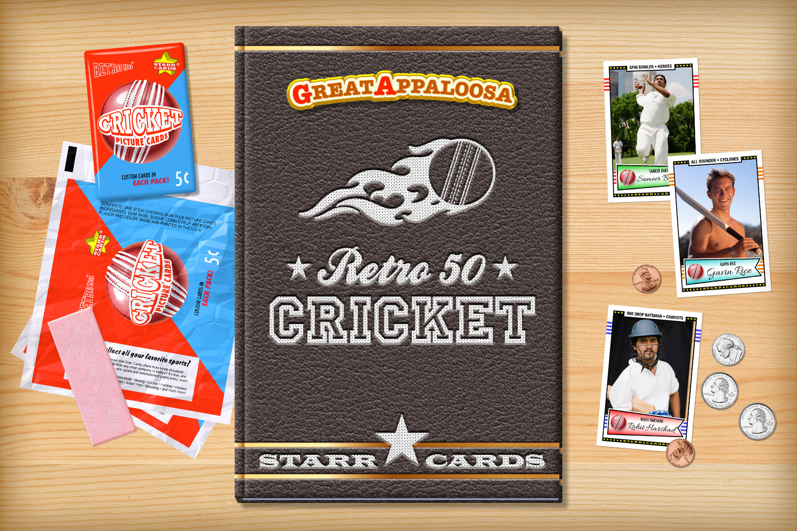Retro 50 series is one of several premium custom cricket card designs that can be unlocked within Starr Cards award-winning Cricket Card Maker for the iPhone, iPad, or iPod. Its classic appearance is ideal for any amateur cricketer or team — each and every card is sure to become a collectable keepsake.