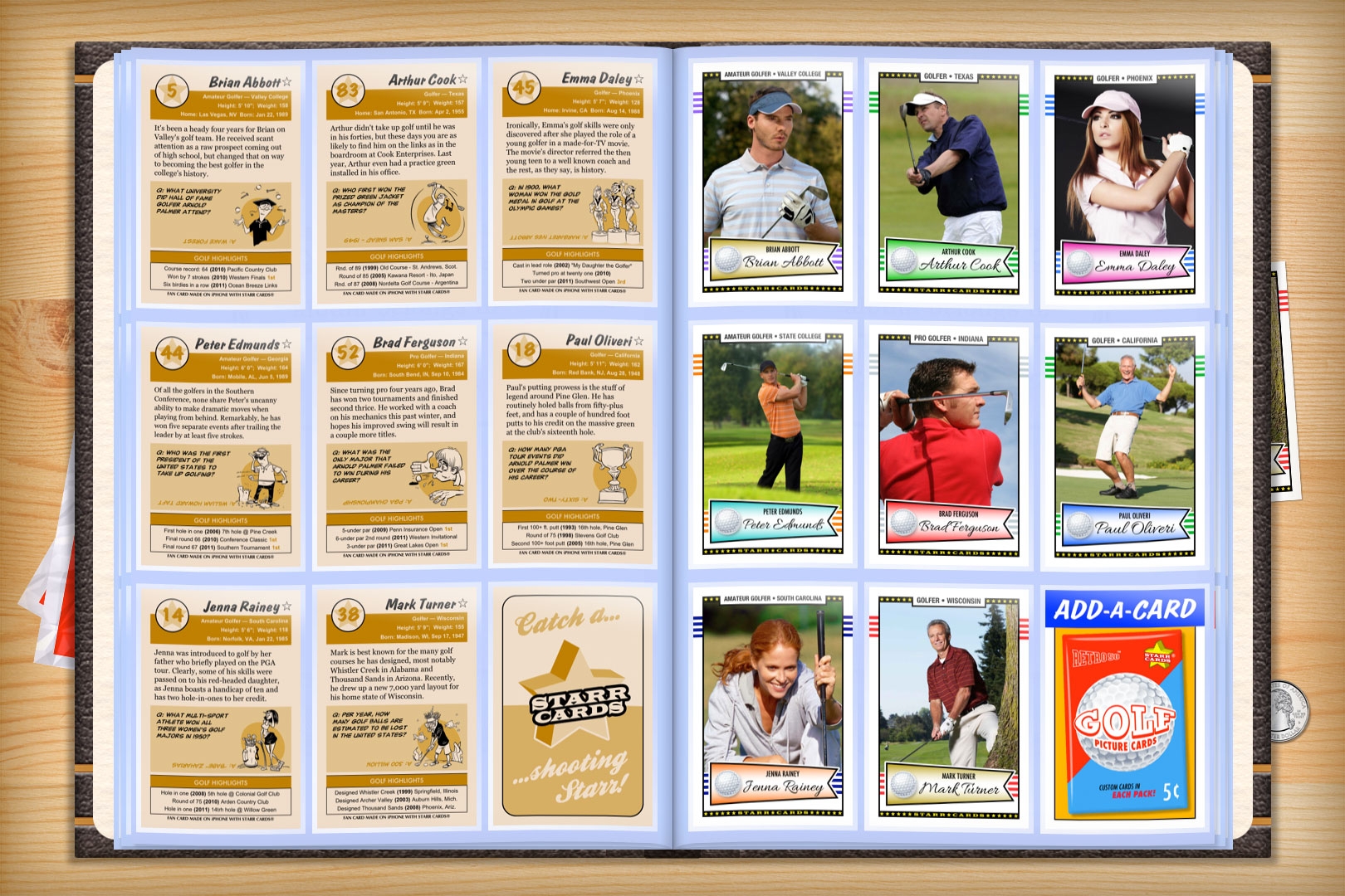 Discover for yourself why Starr Cards is being hailed as “the most exciting development in sports card collecting in the new millennium.” If seeing is believing, then Starr Cards is sure to make you both a believer and a diehard fan. If you like golf, you’re gonna love your Starr Cards custom golf cards!