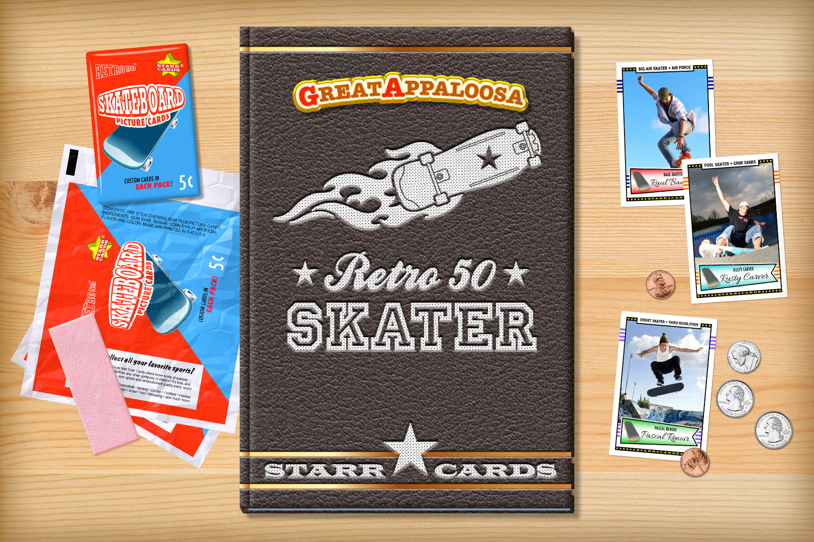 Retro 50 series is one of several premium custom skateboarding card designs that can be unlocked within Starr Cards award-winning Skateboarding Card Maker for the iPhone, iPad, or iPod. Its classic appearance is ideal for any amateur or pro skater — each and every card is sure to become a collectable keepsake.