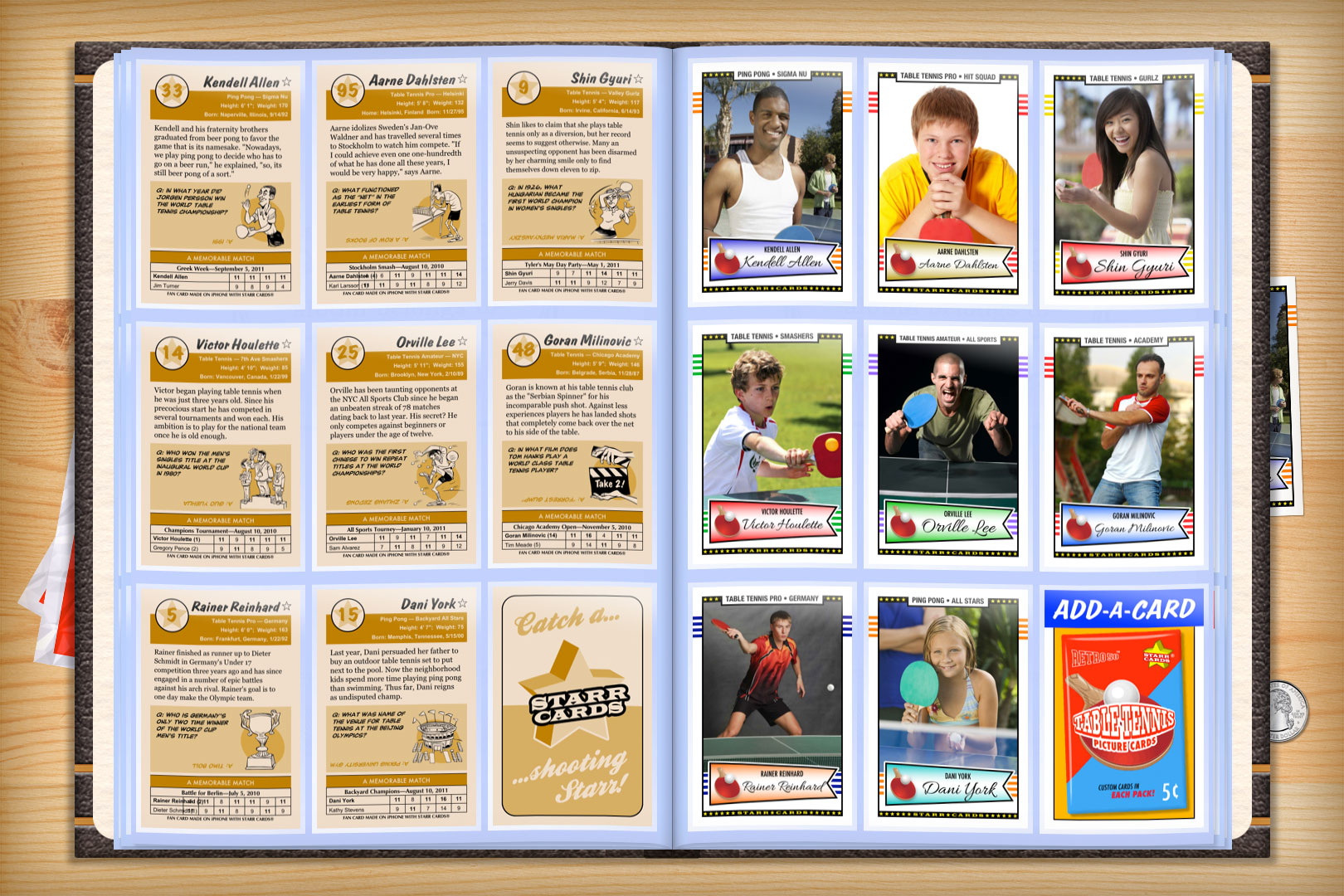 By default, the backsides of cards feature entertaining table tennis trivia including a cartoon Q&A section, fast facts, insider capsules, and the best quotes from the history of the sport.