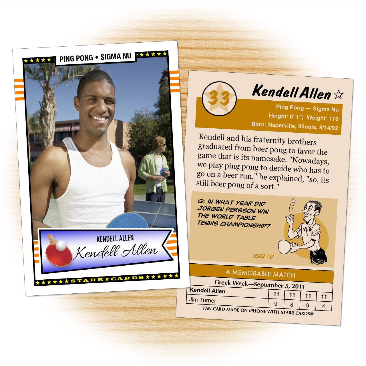 Discover for yourself why Starr Cards is being hailed as “the most exciting development in sports card collecting in the new millennium.” If seeing is believing, then Starr Cards is sure to make you both a believer and a diehard fan. If you like table tennis, you’re gonna love your Starr Cards custom table tennis cards!