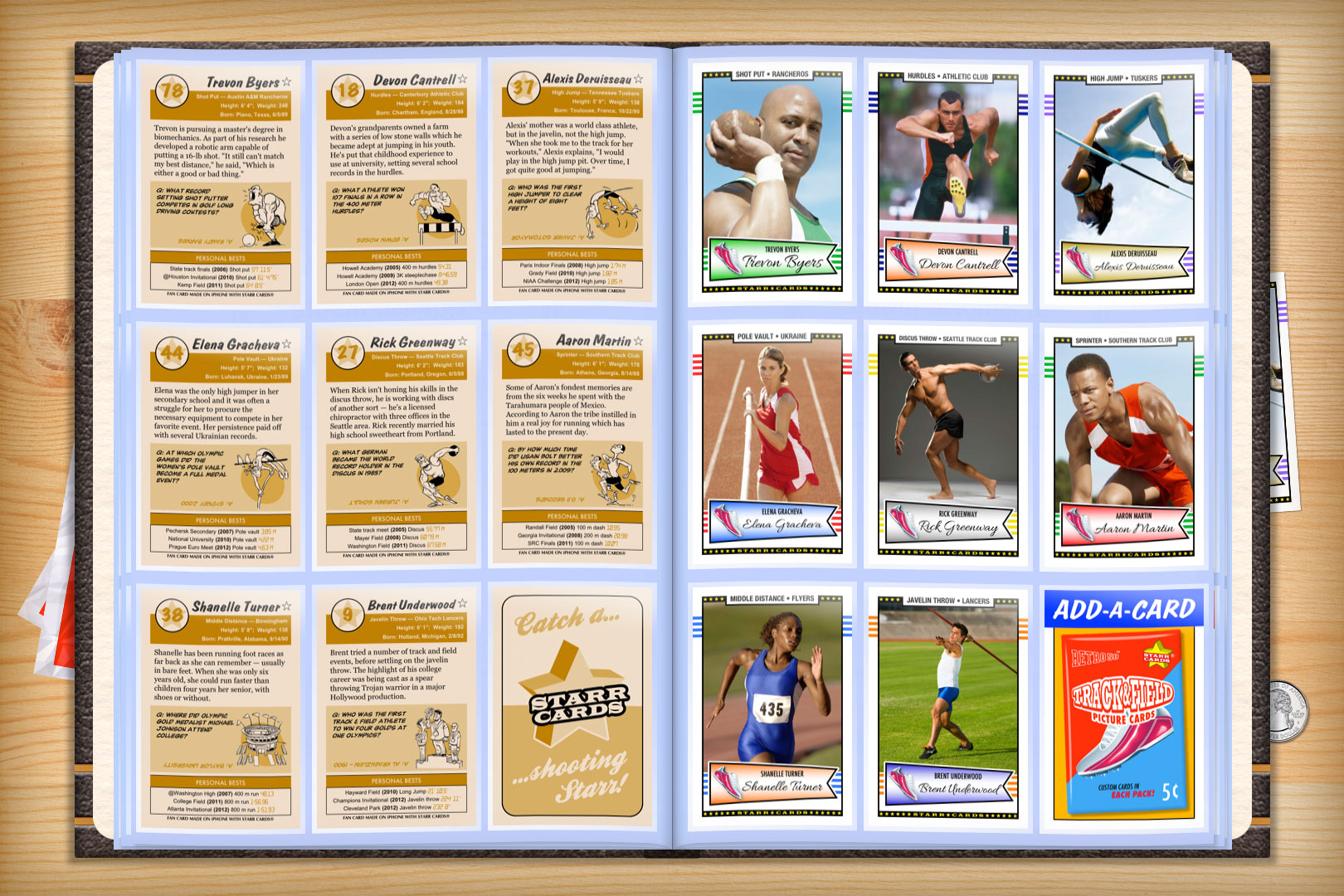 By default, the backsides of cards feature entertaining track & field trivia including a cartoon Q&A section, fast facts, insider capsules, and the best quotes from the history of the sport.