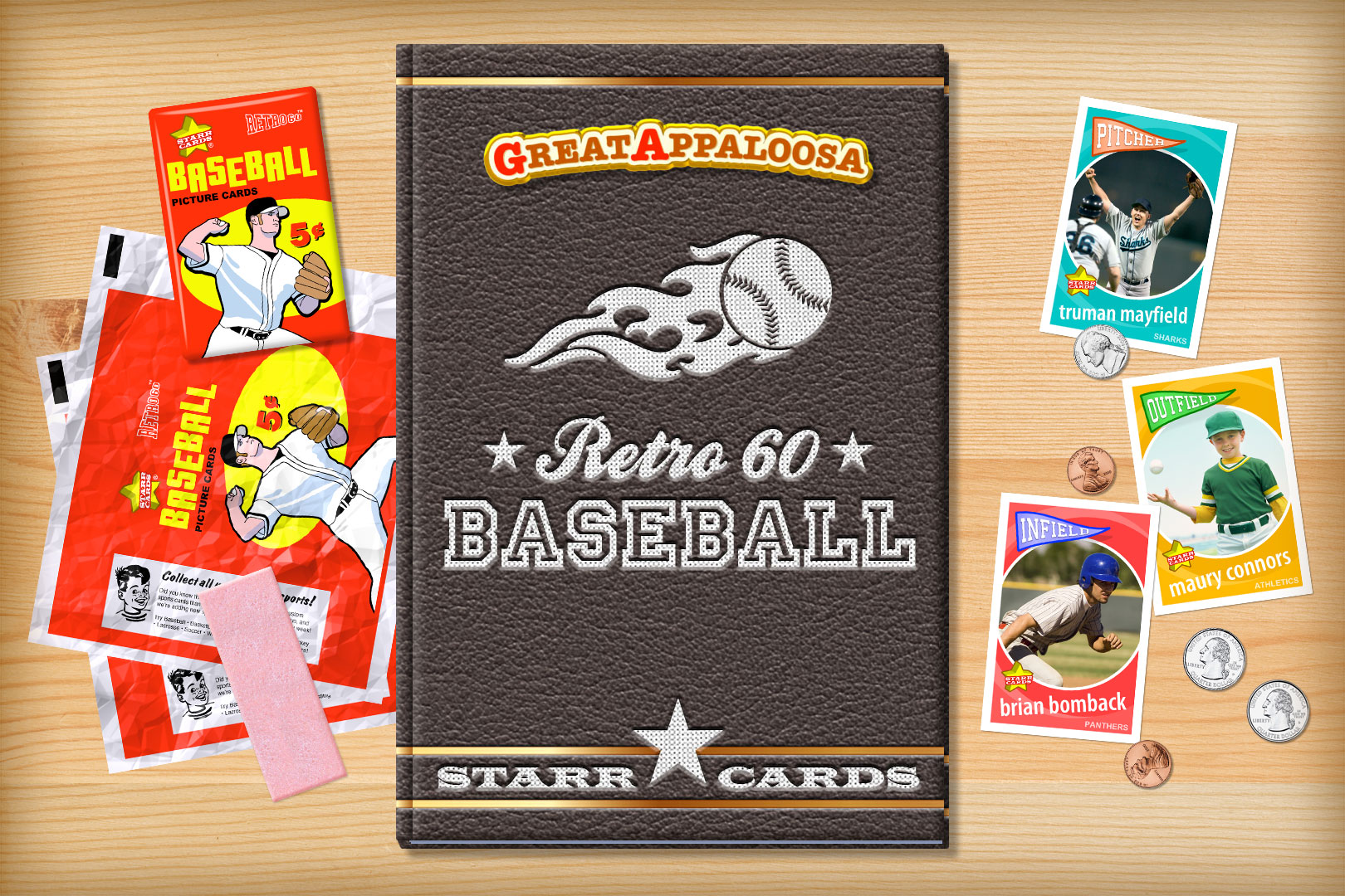 Retro 60 series is one of several premium custom baseball card designs that can be unlocked within Starr Cards award-winning Baseball Card Maker for the iPhone, iPad, or iPod. Its throwback look is the perfect fit for a Little League or prep team — each and every card is sure to become a collectable keepsake.
