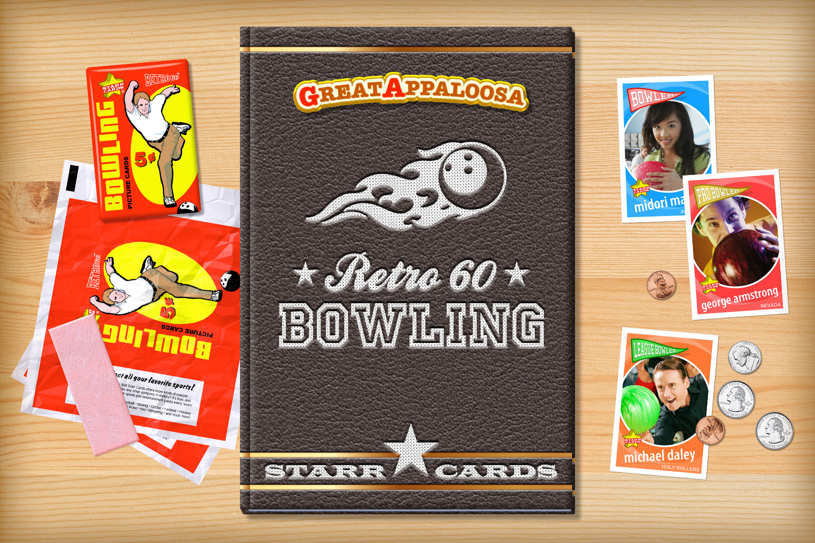 Retro 60 series is one of several premium custom bowling card designs that can be unlocked within Starr Cards award-winning Bowling Card Maker for the iPhone, iPad, or iPod. Its throwback look is the perfect fit for any bowler, league, or bowling lane promotion — each and every card is sure to become a collectable keepsake.