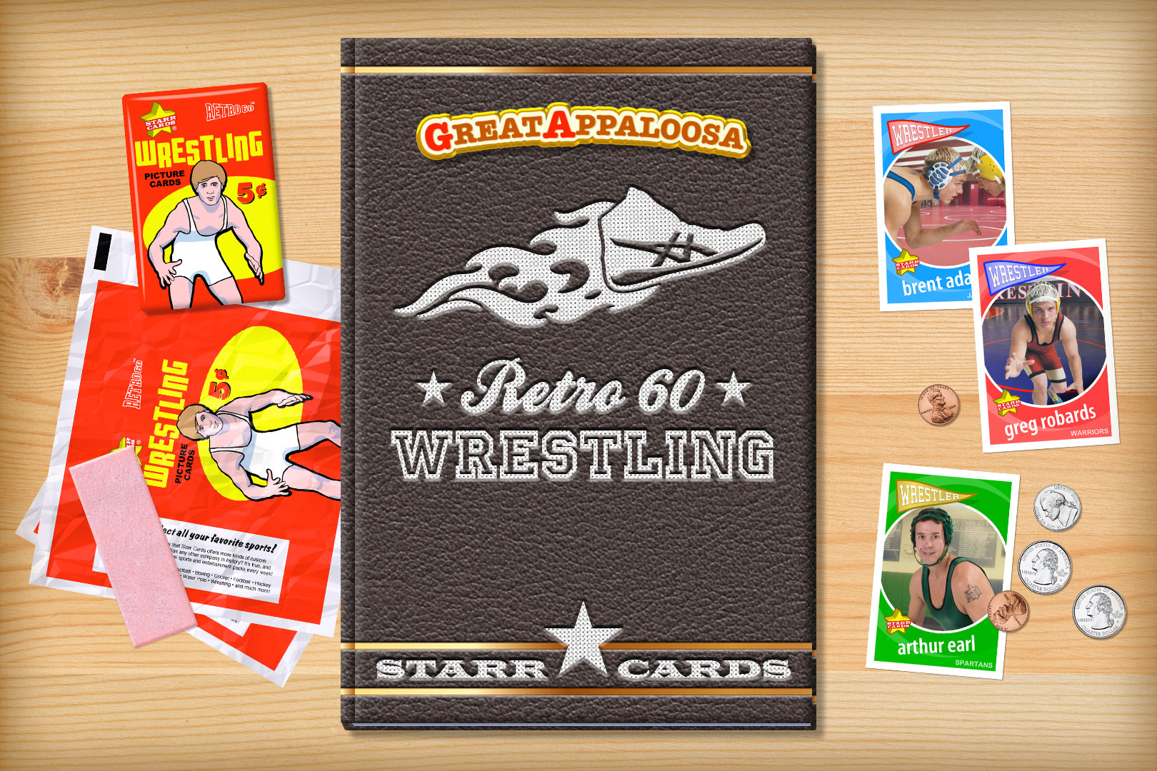 Retro 60 series is one of several premium custom wrestling card designs that can be unlocked within Starr Cards award-winning Wrestling Card Maker for the iPhone, iPad, or iPod Touch. Its throwback look is ideal for any freestyle, greco-roman, or pro wrestler — each and every card is sure to become a collectable keepsake.
