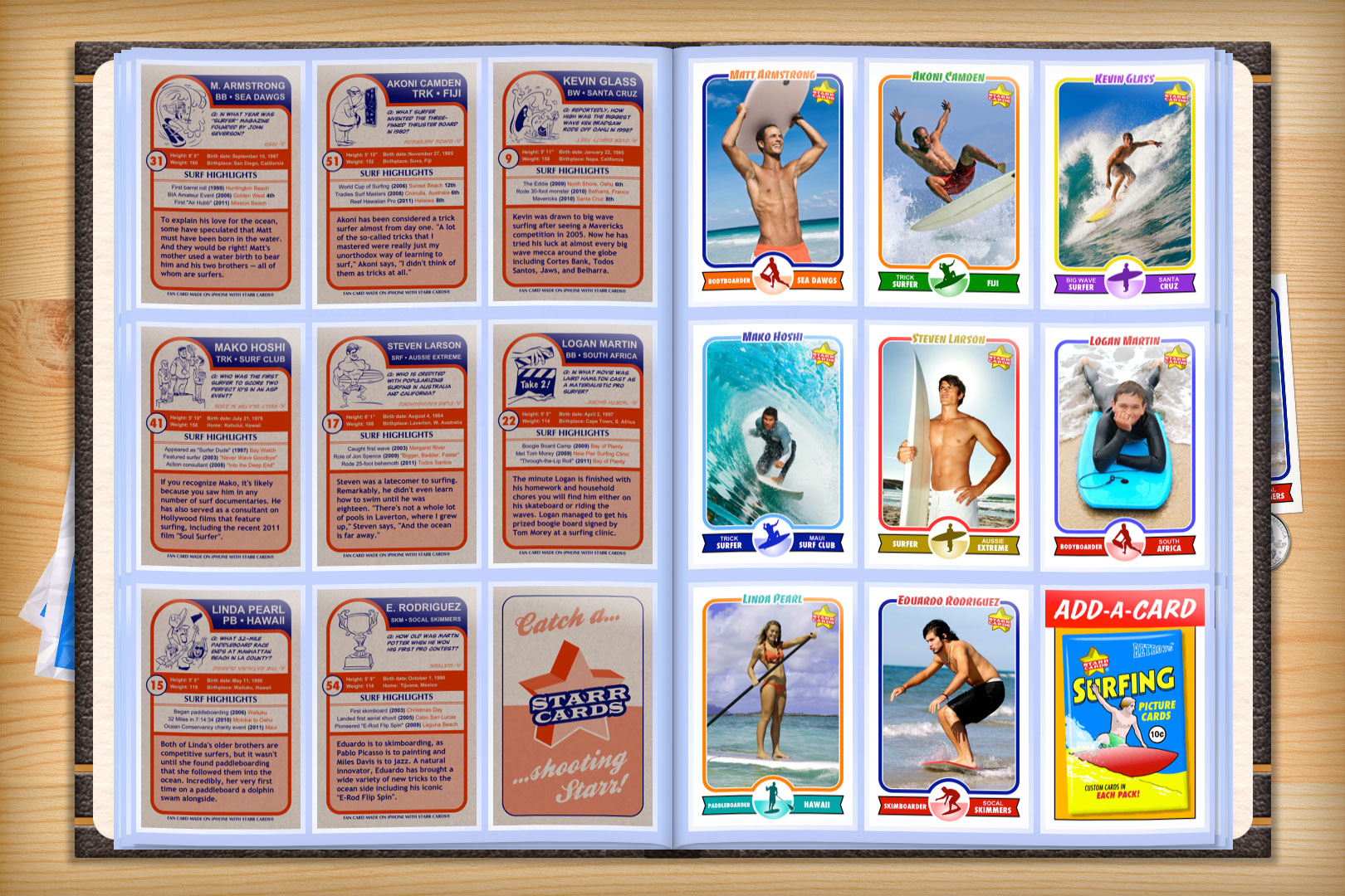Discover for yourself why Starr Cards is being hailed as “the most exciting development in sports card collecting in the new millennium.” If seeing is believing, then Starr Cards is sure to make you both a believer and a diehard fan. If you like surfing, you’re gonna love your Starr Cards custom surfing cards!