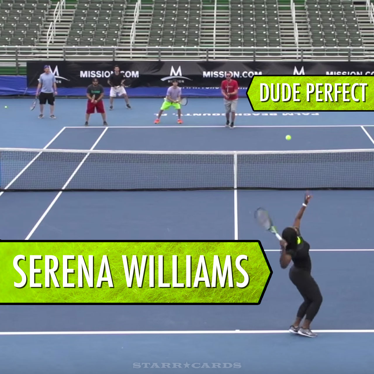 How many Dude Perfect dudes does it take to score a point against Serena Williams? We may never know the answer to that question unless the famed trick-shot specialists expand their team beyond their current five members.