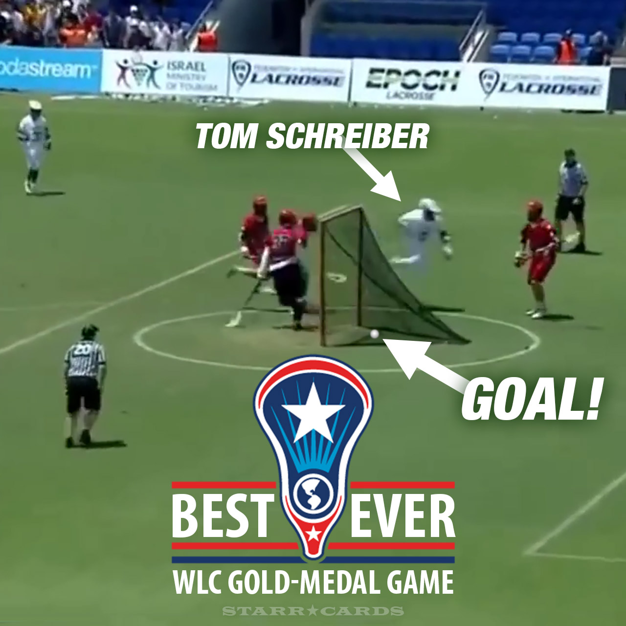 In the final, Team USA got on the scoreboard first with a goal from Tom Shreiber, followed four minutes later by one from Paul Rabil. Team Canada then took control with four consecutive goals, before the Americans answered back with a pair of their own to knot the score at four apiece.