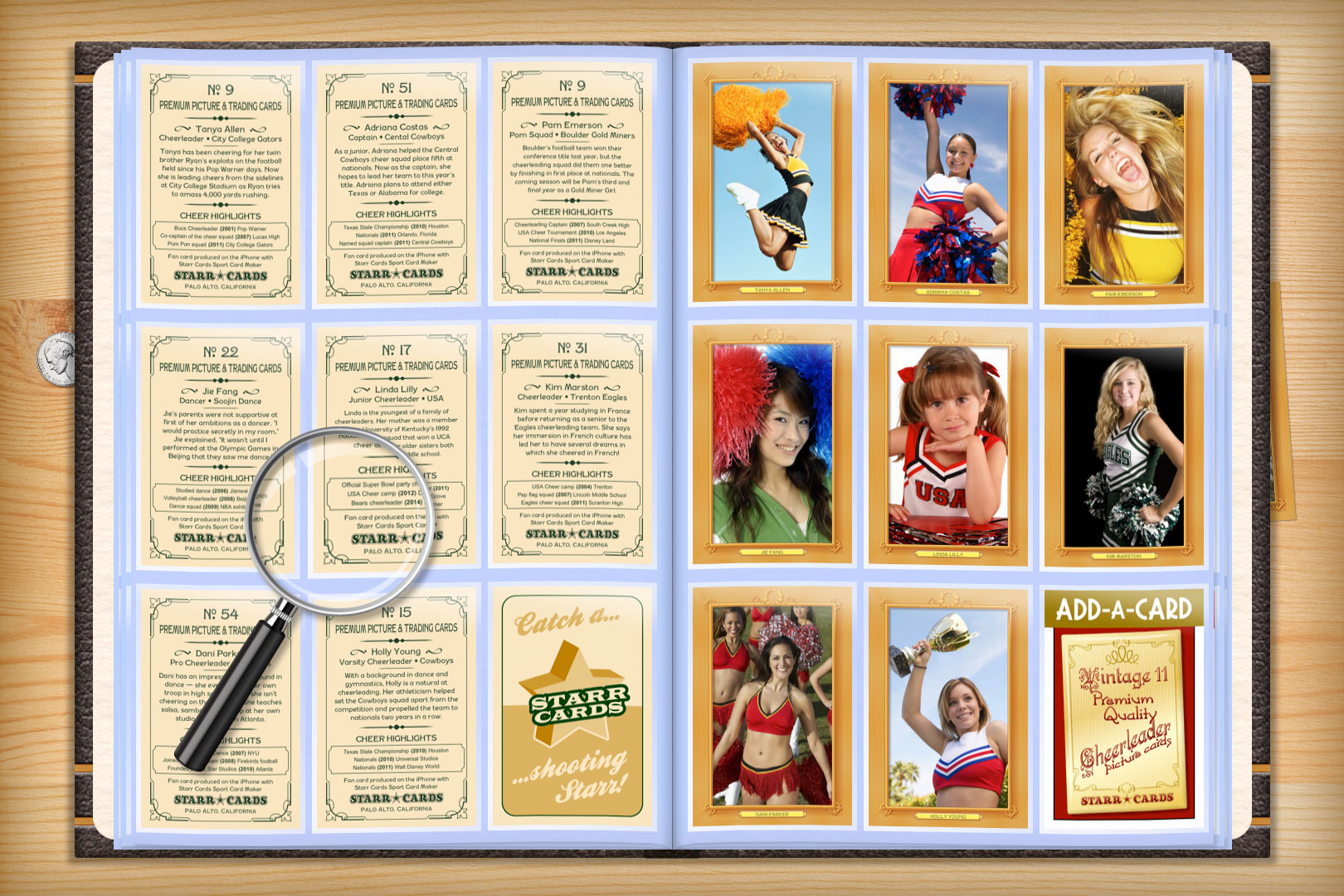 Discover for yourself why Starr Cards is being hailed as “the most exciting development in sports card collecting in the new millennium.” If seeing is believing, then Starr Cards is sure to make you both a believer and a diehard fan. If you like cheerleading, you’re gonna love your Starr Cards custom cheerleader cards!