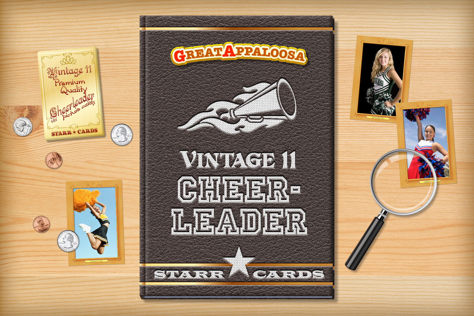 Vintage 11 series is one of several premium custom cheerleader card designs that can be unlocked within Starr Cards award-winning Cheerleader Card Maker for the iPhone, iPad, or iPod Touch. Its refined appearance is ideal for any prep or college cheerleader squad — each and every card is sure to become a collectable keepsake.