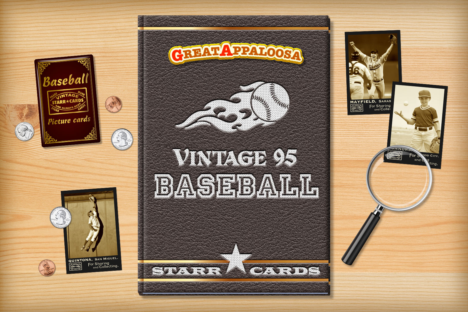 Vintage 95 series is one of several premium custom baseball card designs that can be unlocked within Starr Cards award-winning Baseball Card Maker for the iPhone, iPad, or iPod Touch. Its old-timey appearance is a perfect fit for a Little League or prep team — each and every card is sure to become a collectable keepsake.