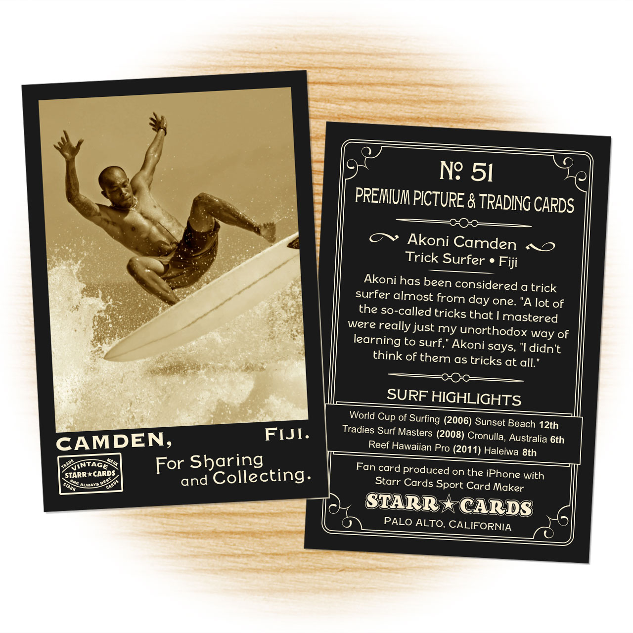 Discover for yourself why Starr Cards is being hailed as “the most exciting development in sports card collecting in the new millennium.” If seeing is believing, then Starr Cards is sure to make you both a believer and a diehard fan. If you like surfing, you’re gonna love your Starr Cards custom surfing cards!
