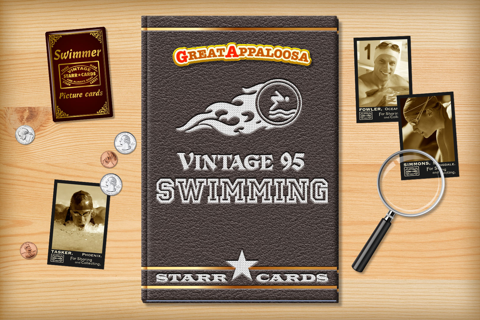 Vintage 95 series is one of several premium custom swimming card designs that can be unlocked within Starr Cards award-winning Swimming Card Maker for the iPhone, iPad, or iPod Touch. Its old-timey appearance is ideal for any amateur swimmer or prep team — each and every card is sure to become a collectable keepsake.