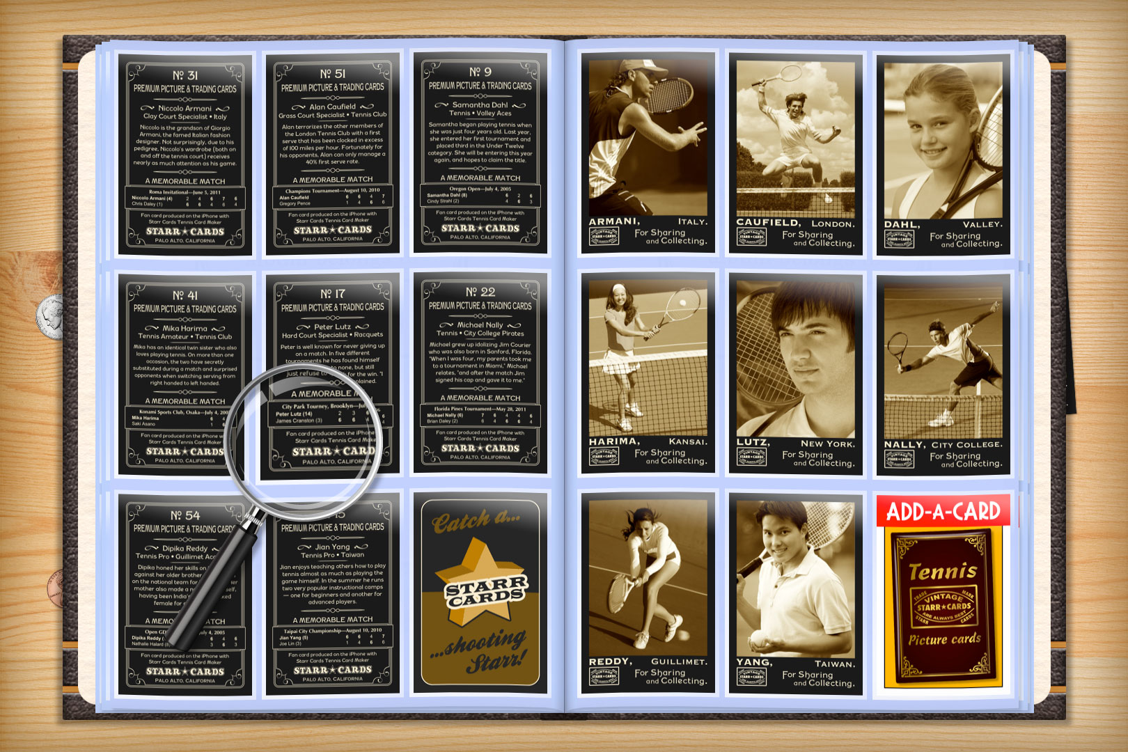 Discover for yourself why Starr Cards is being hailed as “the most exciting development in sports card collecting in the new millennium.” If seeing is believing, then Starr Cards is sure to make you both a believer and a diehard fan. If you like tennis, you’re gonna love your Starr Cards custom tennis cards!