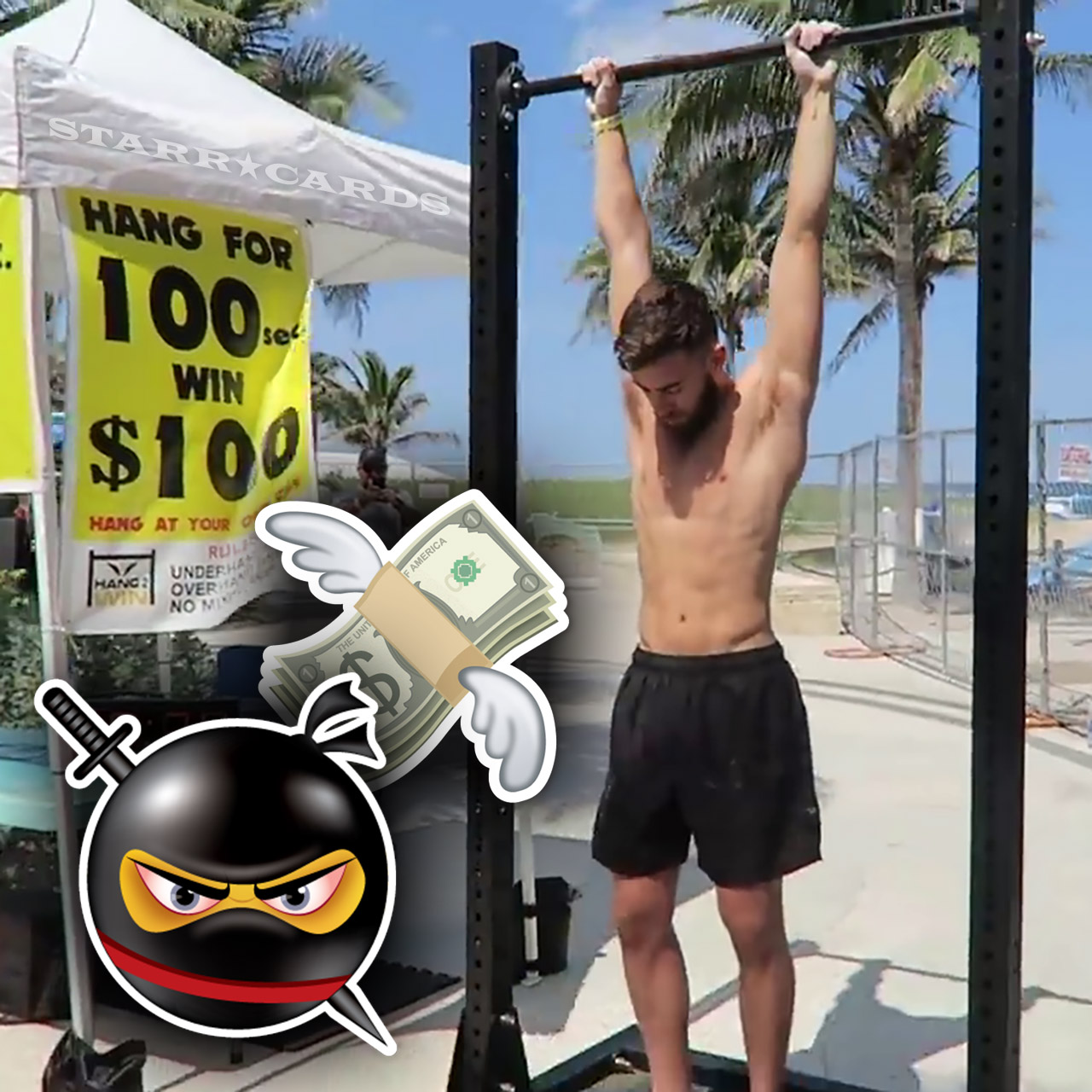 Fitness motivator Corey Hall was enticed by the same Hang Challenge and imagined it would be the easiest 100 bucks he ever pocketed, but like Gomes he came up short as his grip failed with 25 seconds to go.