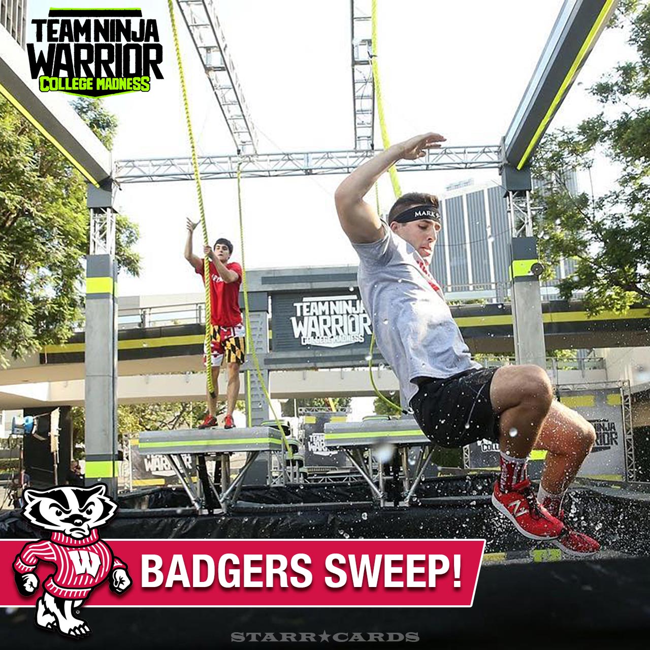 Team Ninja Warrior: College Madness turned to the Big Ten to find a fourth and final team to join Georgia, MIT and UCLA in its championship round. Obstacle racing squads from Michigan, Ohio State, Maryland and Wisconsin battled to the buzzer.